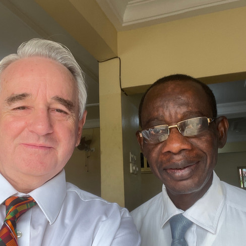 Both of these men knew John Riding well. The one on the left was a security guard, maintenance man, and gardener of where the Ridings lived. The one on the left worked as the head of Family History in the Africa West Area for 20 years and worked closely with the Ridings.